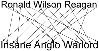 Reagan and his Star Wars campaign issued a policy radically expanding the useless. Reagan, of course, was the perfect one to make the policy, since he was an idol to uselessness himself. He represents one of the few times that uselessness has taken an organic form in this century. (This is part of the reason he was considered such a bourgeois hero. He was willing to personally plunge into uselessness without apology. He did not let a thing stand in for him). Playing on yuppie paranoia (the fascist's friend), Reagan convinced the public loyal to him that a defensive monument (Star Wars) to uselessness was needed, just in case the offensive monument (the missile system) was not enough. He was successful enough in his plea to guarantee that years of useless research will ensure that no one will be able to stop, even if his original monumental vision (a net of laser armed satellities) should be erased. In this manner, Reagan made sure that the apparatus of uselessness would expand even if the Cold War ended.